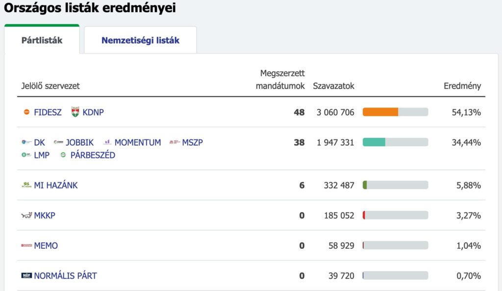 A választások két legnagyobb vesztese a MKKP és a DK, a Mi Hazánk Gatyánk meg egy helyben jár a 6 mandátumával. Végül is, ha úgy vesszük, még ez is túl sok!